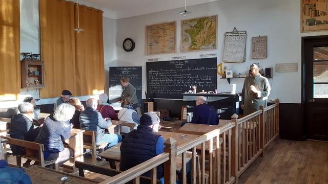 La salle de classe a été reconstituée, avec son tableau noir et ses grandes cartes géographiques, des documents, livres et matériels utilisés à cette époque nous sont présentés.