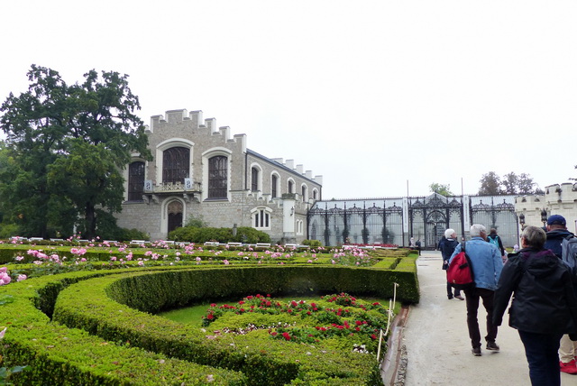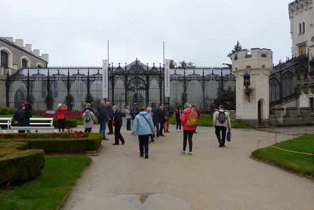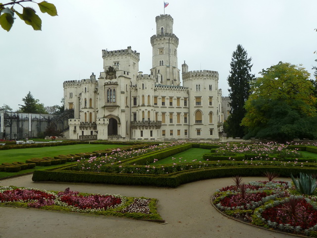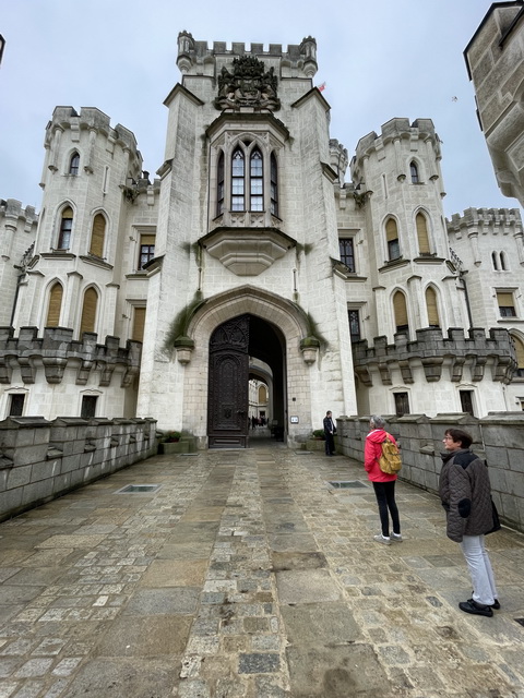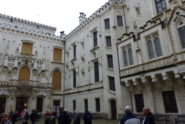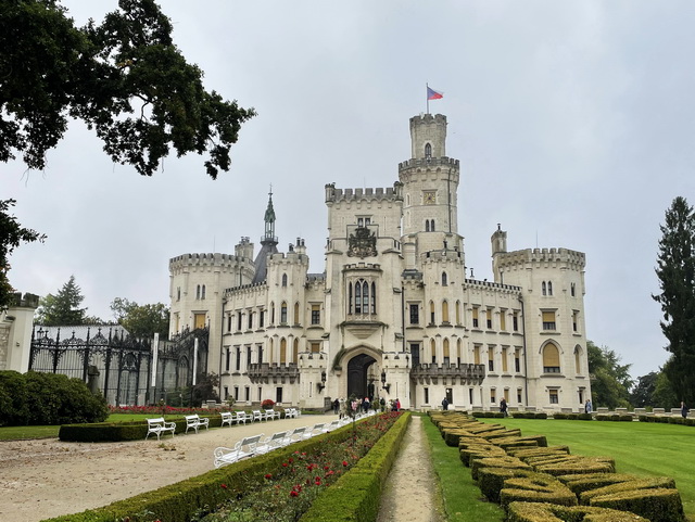 Avec sa tour effilée et ses interminables fenêtres en ogive, la splendide église gothique Sv. Vita fait contrepoids à la grande masse du château, de l'autre côté de la rivière.