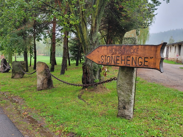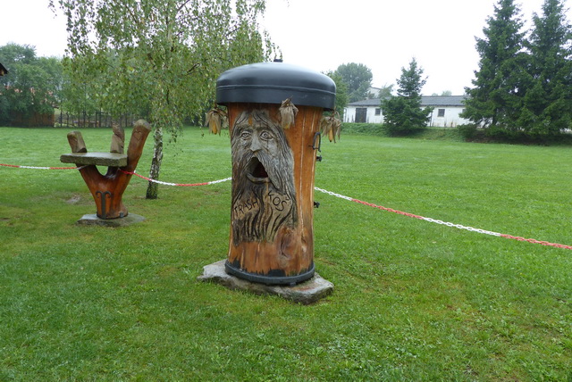 Avant le repas, petit tour dans un parc aménagé, une copie de Stonehenge avec quelques pierres dressées et quelques sculptures sur bois.