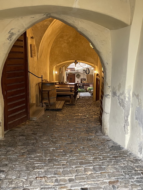 Retour au village pour un bon déjeuner dans une salle voûtée
