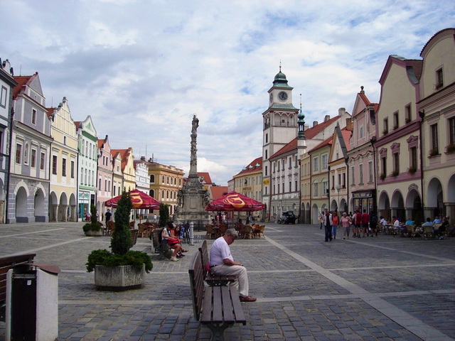 Au milieu d’une région d’étangs, dans la Bohême méridionale, Třeboň (8300 ha) est une petite cité fortifiée qui mérite de s’y arrêter notamment pour sa jolie place de l’hôtel de ville.